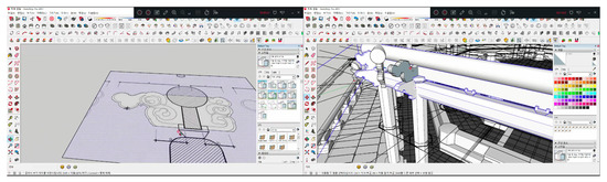 In this case study, sketchup was used for 3D modeling. Including information other than the shape information in the 3D model becomes a major factor in increasing the capacity of the model. In particular, in the case of a commercial BIM authoring tool (e.g., Revit) that creates an information model, functions for modeling basic elements are provided. These functions are not optimized for modeling cultural heritages. In addition, the capacity of the software itself is large as it includes a number of functions that are not necessary to build a 3D model for cultural heritages. To manage capacity and prevent input of useless information, a lightweight 3D model was built using Sketchup. A lightweight 3D model was transformed into an building information model (BIM).