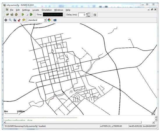 We used SUMO to simulate road networks in Karamay, as demonstrated in Figure 6. We used SUMO to generate the traffic flow simulation of Karamay.