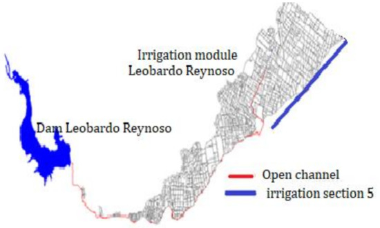 Locations of the Leobardo Reynoso Irrigation Module, Open Channel and Irrigation Sector No. 5.