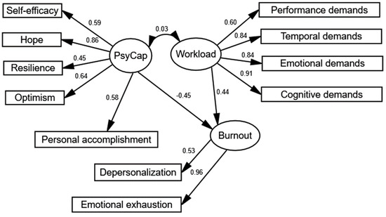 Previous research has shown that PsyCap could be a positive resource to cope with job burnout [50,51,52]. Despite these results, the study of the relationship between job demands (e.g., workload) and individual variables (e.g., PsyCap) has received less attention [9], so more research about the role of personal resources and job demands on the development of burnout is needed to design efficient strategies of prevention.