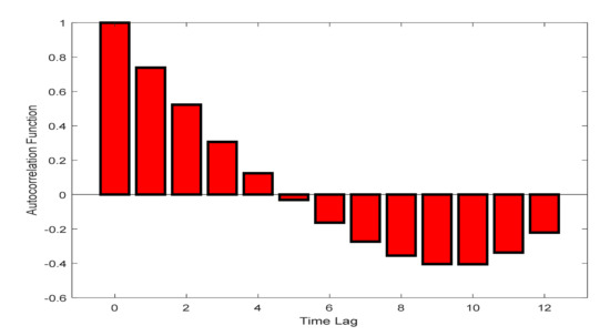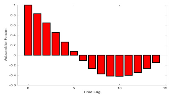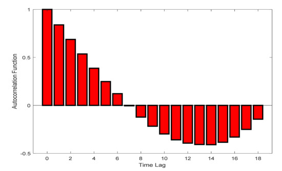 Autocorrelation Function (ACF): it defines how the correlation between any two values of the signal changes as their separation changes. It is a time–domain measure of the stochastic process memory, and it does not reveal any information about the frequency content of the process. For error signal et, the ACF can be formulated as: