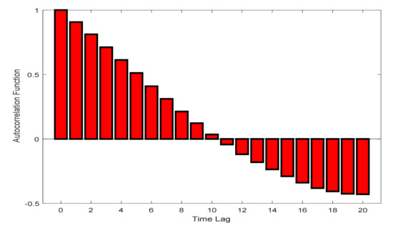 Figure 20 depicted the ACF of the FC 250 W PEMFC stack. The presented values of the qualified test are in the range of −1 and +1.