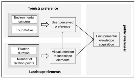 All these studies showed that there may be a connection between the visual attention of landscape elements, the visitors’ perception preference, and their understanding of the environmental information. The purpose of this research is to study the different visual concerns on urban wetland parks by people of diversified environmental concerns, quantify tourists’ perception of different landscape elements based on visual attractiveness, and explore the potential in these elements to enhance people’s understanding of environmental information and promote public awareness. Figure 1 illustrates the conceptual framework of the article. The conclusions of the current research can assist in wetland management and design (including education programs), therefore, improving the parks’ function of environmental education. In other words, this research investigates the following research questions (RQ):