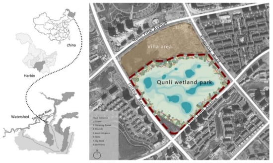 Qunli National Wetland Park is located at the center of Qunli New District, Harbin, China. It was acknowledged as one of the sixth batches of National Urban Wetland Parks and won the 2012 ASLA Professional Award. It covers an area of 303,000 square meters (Figure 2). Qunli National Wetland Park plays a demonstrative role in the construction of national parks and nature reserves.