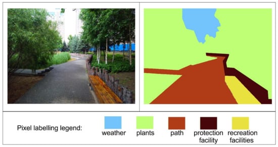 In order to study the influence of environmental factors on fixation behaviors, we defined an area of interest (AOI) in the picture view (Figure 3). We defined eight types of objects and digitized them, which are travel paths, plants, bird-watching structures, interpretive signs, surrounding buildings, weather, protective and recreational facilities in particular. By analyzing the eye movement data on different environmental elements, we can look into the subjects’ characteristics of visual perception and information recognition of the wetland park environment.