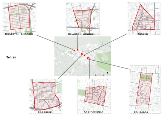 The location of the six selected neighborhoods in Tehran [42].