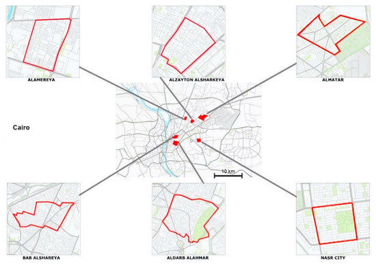 The location of the six selected neighborhoods in Cairo [42].