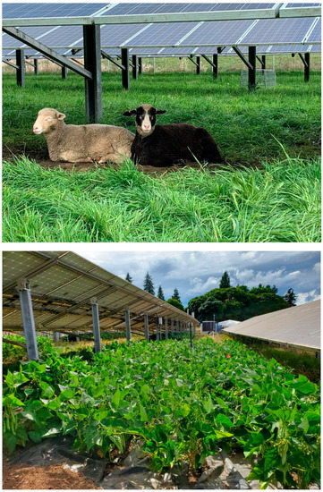 - Marrou, H.; Dufour, L.; Wery, J. How does a shelter of solar panels influence water flows in a soil-crop system? Eur. J. Agron. 2013, 50, 38–51. [Google Scholar] [CrossRef]