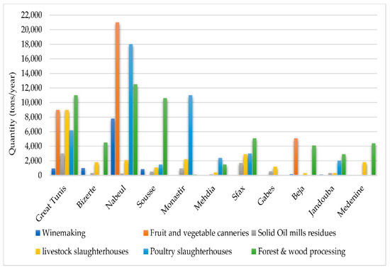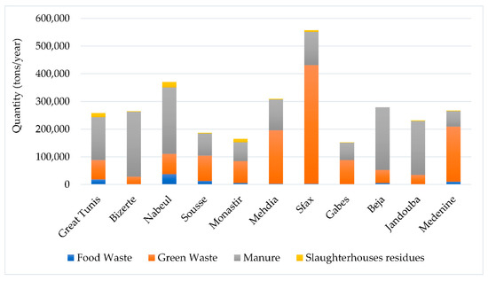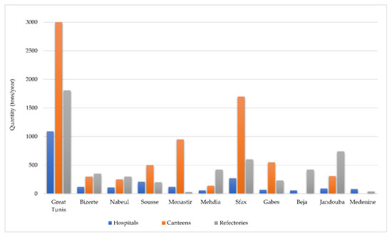 4.1. Potential of Biowaste in Tunisia: Quantification of Biowaste per Sector of Activity