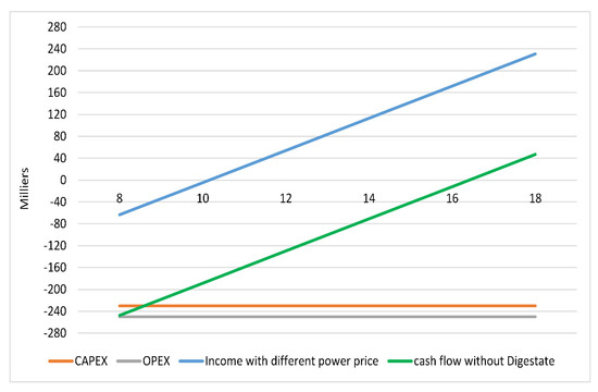 | Power Price (cent/kWh) | Without Digestate Sale | With Digestate Sale | ||||