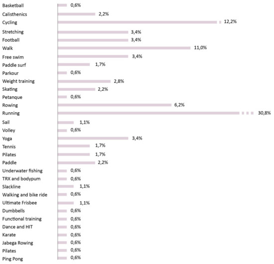 Types of sports. Main sports activities in the urban space of the city Malaga according to surveyed users. Source: data obtained from the online surveys conducted.