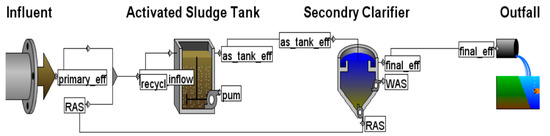 - Representation of DWWTP for the biological treatment units and stages flow diagram in the GPS-X environment is depicted in Figure 3.