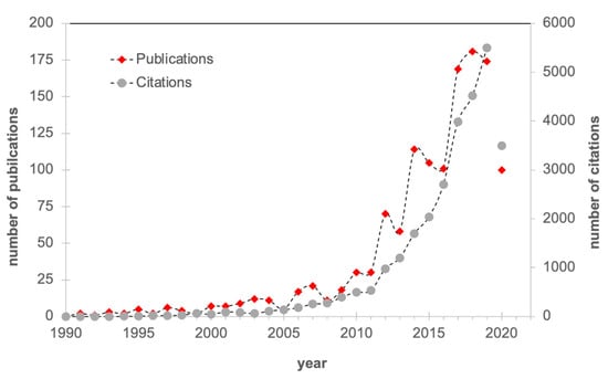 Citation report for 1277 results from the WOS Core Collection between 1990 and 2020, including the total number of publications, citations and average citations per item regarding the ISCC topic.