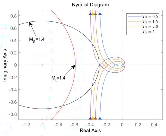 Based on the Nyquist stability criterion, for an open-loop stable plant , the control system is stable if and only if the Nyquist plot of does not encircle the critical point (−1, j0). Then, equations including and can be obtained by