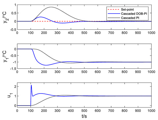 Comparison of the simulation results from cascaded DOB-PI and cascaded PI strategy.