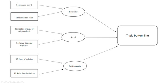 In order to analyse the role of the state in the pursuit (or lack of thereof) of sustainable development in the ILVA case, the four historical phases of development of the steel plant were identified, and an analysis making use of the triple bottom line approach [24] and of total interpretative structural modelling (TISM) were conducted on each of those [25]. TISM is a method that helps to convert ill-structured mental models into well-articulated models that act as the basis for conceptualization and theory building [26]. The application of TISM can be extended to articulate and interpret [27] many more complex issues in decision making and culture and policy formulation. Two important factors from each section of the triple bottom line are used. Hence, a total of six important factors are taken for the model (Figure 1 and Table 1). Factors such as sustained economic growth and shareholder value are taken from the economic perspective; similarly, the standard of living of neighbourhoods and human rights of employees are taken from the social perspective; the level of pollution and the reduction of emissions are taken from the environmental perspective.
