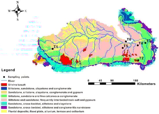 Due to the existence of the Khorat Plateau, the terrain of the Mun River Basin is generally high in the west and low in the east. The rock basement of the Mun River Basin is the so-called Khorat Group, which is mainly composed of sandstone, siltstone, shale, and conglomeritic sandstone (Figure 1). The rock basement is mainly covered by the unconsolidated Quaternary alluvial sediment [21,22,23].