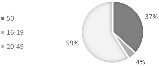 The beginning of the analysis started with the distributions of the respondents among the levels of sociodemographic characteristics. Distribution across the age groups is given in Figure 3.