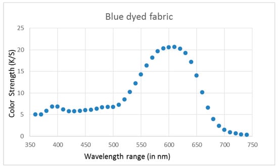 K/S spectrum of the blue dyed fabric.