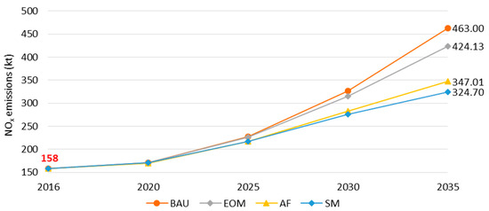According to the particularity of each scenario design, plenty of different measures and initiatives of energy efficiency [6,65,66], alternative fuels [18,67,68,69,70], atmospheric emissions [71,72], and sustainable mobility [9,73,74,75], trends have been applied and integrated. National and international research institutions and researchers have developed these initiatives, who have studied the road transport sector [76].