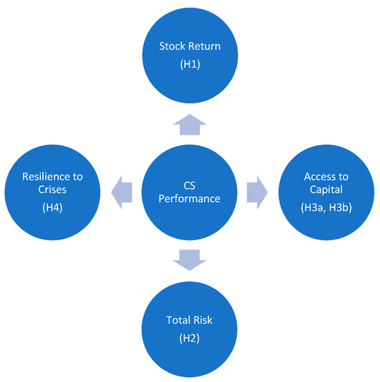 Table 1 summarizes some of the previous academic studies on the market performance impact of sustainability indices. The following subsections provide a discussion on the logic of the study’s hypotheses investigating the links between CS performance and market-specific company performance measures, including the stock return, total risk, gaining access to capital, and resilience to crises.