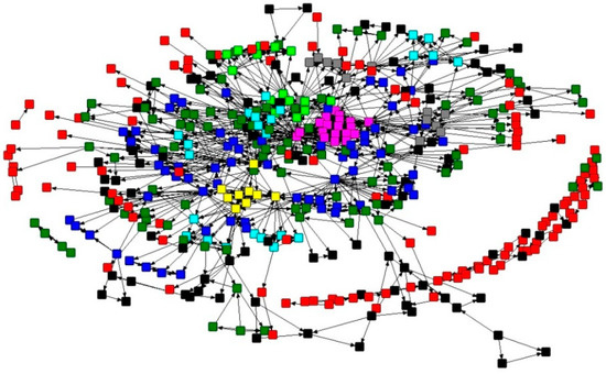 In order to analyze the attributes of the joint venture capital network, the software UCINET 6.0 (University of California, Irvine, CA, USA) was used to describe the joint venture capital events and to construct the joint venture capital network of 2013–2017 studied in this section. The joint venture capital network structure is shown in Figure 2.