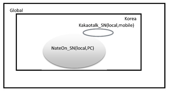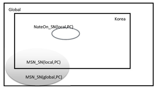 As seen in Figure 2, before 2003, MSN had a bigger LPSN than NateOn in the same PC space in Korea. The number of PC-based MSN social network users in Korea was about 6 million, which was much larger than that of PC-based NateOn social network users in Korea.