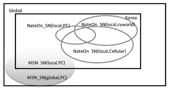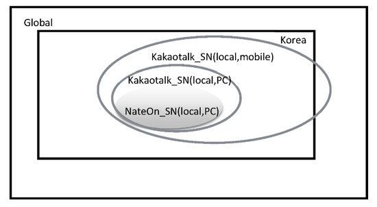 Since 2005, NateOn integrated both the social network of Cyworld, i.e., NateOn_SN (Cyworld; represented in Figure 3) and the cellular phone address book social network, i.e., NateOn_SN (Cellular), into its PC-based social network, i.e., existing NateOn messenger, NateOn_SN (PC).