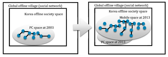 Before 2013, Myspace was the representative SNS in the United States. Myspace was acquired by Rupert Murdoch’s News Corporation at about 700 million USD. At this time, Mark Zuckerberg of Facebook said that it was a matter of time before Myspace was taken over by Facebook because the new owners did not know the nature of the social network. Mike Jones, former president of Myspace, said in an interview, “I believe that Facebook was able to keep up with Myspace because it made the social network perfect, whereas Myspace just introduced the social network to people [29].” Myspace encouraged anonymous systems, which increasingly hindered the enjoyment of social networks. On the other hand, Facebook continued to encourage people to use their real names. This important difference in the two SNSs will serve as a game-changer in the future. The use of real names is the basic requirement for bringing offline social networks online.
