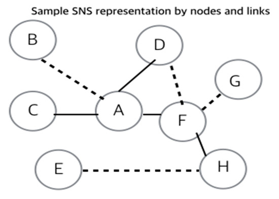 Now let us say that an SNS is replicated in the real-world like in Figure 12. This means A has not or could not replicate friend B yet and F has not or could not replicate D or G yet, either. (Even if B or G becomes a member of this SNS, it happens that A is not yet connected to B or F is not yet connected to G. Let us say they were enemies before.)