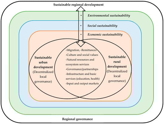 Although urban-rural physical boundaries can be defined, governance systems, information, tradition, culture, and family ties are blurred and overlap in some cases. Cultural, traditional, and family ties can influence strong urban-rural linkages, which can facilitate sustainable social and economic development []. On the other hand, social relationships can be diluted by urban-rural linkages if social ties and cultural values are not preserved []. Social and political jurisdictional boundaries do not apply to the new commons (ecosystems services) [], as they apply in both urban and rural areas. The urban-rural linkages concept is vital in the development of agriculture and poverty reduction [,], and it is critical for policy planning and implementation [], macroeconomic policy, and poverty alleviation []. The role of urban-rural linkages in the New Urban Agenda includes social inclusion, opportunities for all, poverty eradication, environmental resilience, and governance [].