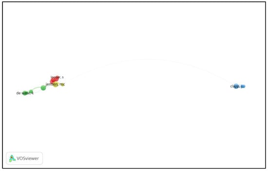 The author co-citation analysis contributes to knowledge about the intellectual structure of the research topic [51]. In this case, it is aimed at detecting which authors are most frequently cited together on the research field of M&A and sustainable practices. There were a total of 3949 cited authors in the 92 documents analyzed, of which 35 met the threshold of a minimum of 5 citations of an author. As can be seen in Figure 2, the co-citation analysis developed using the VOS-viewer software is illustrated, in which the largest set of connected items consists of 15 items. Each node represents an author, and its size indicates the number of times the author has been referenced in the 92 documents. A link between two nodes indicates a co-citation relationship. Each link has a strength and the higher the strength, the greater the thickness of the link. The nodes are also grouped according to similarity. The association strength normalization method used by VOS Viewer software identified four groups.