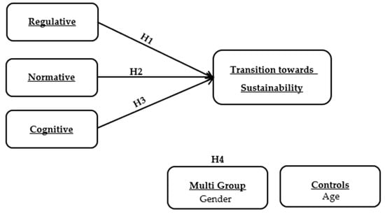 Transition toward sustainability = 2.14 + 0.34 *Reg. + 0.26 *Norm. + 0.17 *Cog. + ε