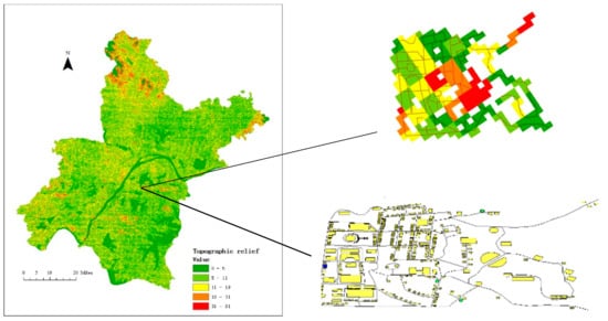 In the rainstorm evolution, waterlogging will gradually increase the range, depth and velocity. Therefore, it is more reasonable to find the location of waterlogging points according to the terrain features. This paper extracts 30 Meters DEM (Digital Elevation Model) of Wuhan through the geospatial data cloud (http://www.gscloud.cn/). The neighborhood analysis in ArcGIS (A complete mapping and analytics platform for developers, https://developers.arcgis.com/) is applied to obtain topographic relief (as shown in Figure 1).