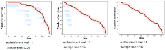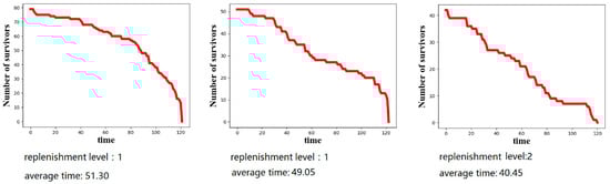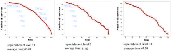 (2) The third-level shelters have gathered the most pedestrians in the scattered situation, and continuous replenishment is vital. However, the disaster relief effect of the second-level shelter is not very satisfactory.