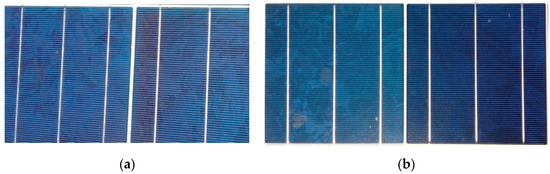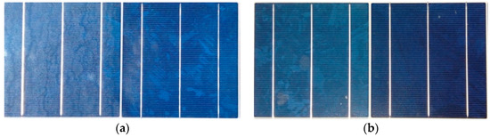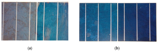 Dust accumulation on PV (photovoltaic) panels’ surface. (a) Clean surface on 18.03.2019. (b) Clean surface on 20.02.2019.