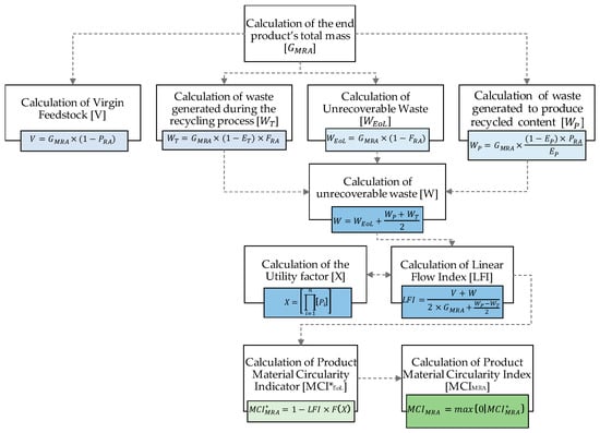 Workflow followed for the quantification of the product level Material Circularity Index (after Mantalovas and Di Mino, 2019 [10]).