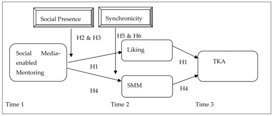 Furthermore, social media-enabled mentoring means that mentoring tasks are supported by ICT capabilities of social media [12,13]. MDP [24] presumes that desirable task outcomes are determined by the fit between the tasks supported by media and media capabilities. Thus, the effects of social media-dependent mentoring on mentees’ (learners) responses should be regulated by social media capabilities. Accordingly, we integrated MDP into CALT to examine how sustainable mentoring interacts with ICT capabilities of social media (i.e., synchronicity and social presence) and affect users’ affective and cognitive learning states, which ultimately improve TKA.