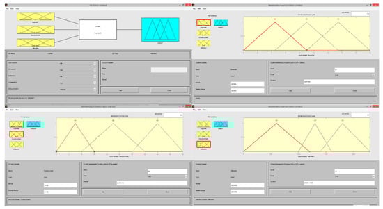 Within the second phase of the methodology, the development of the Fuzzy logic system was simulated using MATLAB programming language. Building the Fuzzy logic system took four steps: establishing the input variables and the related Fuzzy sets, the Fuzzy rule base identification, the establishment of the Fuzzy inference operators, and the neural control [,] (Figure 4).
