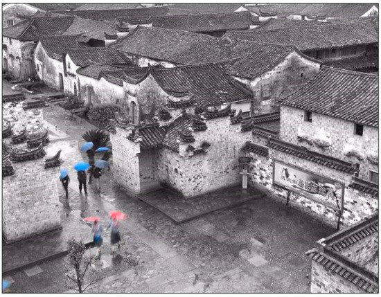 It is generally believed in the academia that the study of traditional Chinese dwellings began with the research on ancient buildings by a group of scholars organized by Society for the Study of Chinese Architecture in the 1930s. Researchers represented by Liu, Liang, Long and Liu, drew lessons from western classical architectural research methods, and investigated typical Chinese dwellings by using architectural monolithic surveying and mapping as a basic operation mode, which laid the foundation for the study of Chinese dwellings [1] (p. 3). Yu (2001) discusses the interaction between architecture, clan organization and family life in southeast China with the method of multidisciplinary research, which analyzes the types and living patterns of dwellings, and conducts a comparative study of dwellings in different regions with typology [14]. Li (2005), intercrossing research of different subjects, has held the main current of the research on vernacular architecture. Based on the thoughts of subject crossing and theories integration, Li’s book tries to research combining vernacular architecture with Sociology, Human Geography, Communication and Ecology in order to set up structural frames of different theories, and to open up various fields of vision for research workers [1] (p. 3). Since the 1990s, scholars have gradually applied multi-disciplinary research to study the traditional residential culture. They have analyzed the residents’ traditional ideas, lifestyle, economy and religion, and shifted from the description of traditional residential houses’ architectural form to a deeper analysis of space and culture.