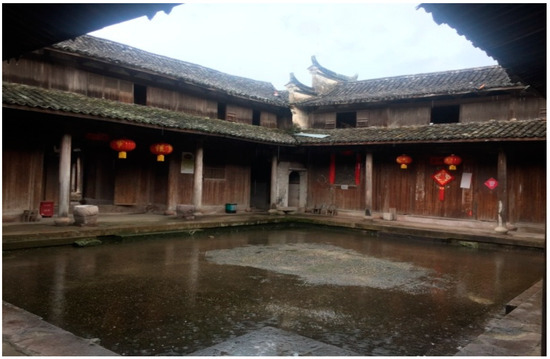 The traditional Chinese society is a pattern of difference that is derived from the inside and pushed out at different levels. Traditional residence is one of them. It is not merely a “container” to live in, but a “home” which corresponds to, carries and specifically represents a human nature, containing the power and passion of life. In people’s concept of living, the traditional residence is an organic structure composed of life, belief, value and ethics, which can best reflect the survival wisdom of “unity of heaven and man” and the continuous life character [1] (p. 171). In the investigation, the researchers found that there were high-ranking officials in the village of Three courtyards nine halls architecture groups in history. Such as Yi-han Li, from Lizhai, who was the Vice Chief Imperial Supervisor in the Ming Dynasty. In the history of Gaoqian, there were many outstanding talents, such as Fu Wu, a great scholar of Long Tuge in the Northern Song Dynasty; Jian Wu, the Prime Minister in the Southern Song Dynasty; and Shi-lai Wu, the Chief Imperial Supervisor in the Ming Dynasty. Xianju is greatly influenced by Neo-Confucianism. Its concept of benevolence, filial piety and harmony is deeply rooted in people’s minds. In the residential buildings, the couplets and murals that promote reading, diligence, and benevolence are everywhere.