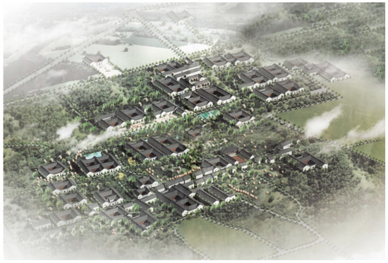 Under the direction of sustainable development, newly-built residential buildings adopt ecological and scientific construction technology, starting from the overall ecological planning of residential buildings, on the basis of fully understanding the functions, forms, structures, meanings, traditional context and ecological system of residential buildings, to improve quality of life, balance the circulation of energy and material flow in the residential system, reduce the waste of natural resources and the destruction of natural environment, and inherit the construction culture of traditional residential buildings [40]. Traditional residential buildings adapt to the natural environment, which is reflected in that the residential buildings and settlement layout conform to the terrain, rarely destroy the natural environment, and the buildings integrate with the local natural landform, which is an organic part of the natural environment. The design of architectural appearance is consistent with traditional residential buildings. In the full excavation of regional cultural characteristics, combined with the production and living needs of the villagers, to achieve the integration of traditional and modern, we highlight the regional characteristics of the village characteristics, which adapt to the needs of the times of new residential buildings. The newly-built traditional dwellings in eastern Zhejiang continue the spatial layout and exterior form of the traditional Three courtyards nine halls dwellings, with traditional grey tile roof and white high Ma Tau Wall (Figure 13). In terms of spatial structure, the scientific and reasonable factors of traditional residential buildings are retained to create a pleasant temperature, humidity and well-ventilated environment. While minimizing energy consumption, hygiene standards, building safety and indoor environmental comfort are improved. New buildings are integrated with traditional residential buildings to achieve sustainable development of traditional residential buildings.