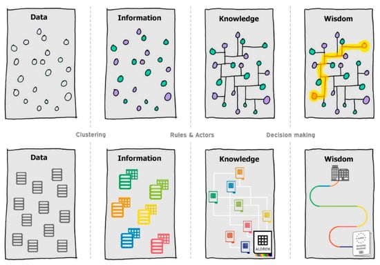 - Rowley, J. The wisdom hierarchy T: Representations of the DIKW hierarchy. J. Inf. Sci. 2007, 33, 163–180. [Google Scholar] [CrossRef]