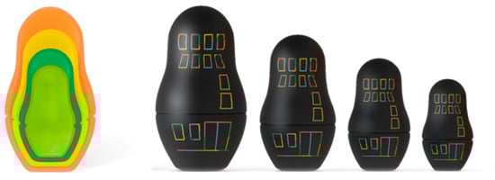 The ALDREN BuildLog is characterized by a different level of information (LoI) to facilitate the data flow along the process and the data comprehension according to the user’s expertise or needs. This concept has been represented in Figure 3 through a transposition of the traditional Russian masterpiece: the “matryoshka”. Each doll represents a dataset level, and this infographic underlines the importance that no one indicator will be lost, nesting one inside the other; however, from the bigger (all raw data) to the smallest (core indicators) matryoshka, a selection from the previous LoI will be performed. The four dolls correspond to the LoI that structure the ALDREN approach and to which the different users could have access according to their needs and expertise. The big doll corresponds to the higher LoI a sort of “data lake” which contains all the information needed along the process.