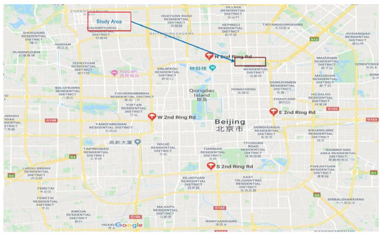 Study area: segment of freeway 2nd Ring Road (Google Map). (Note: the Chinese words in this map are just the name of some buildings (residential, temples etc.) and will not affect the meaning of this image).