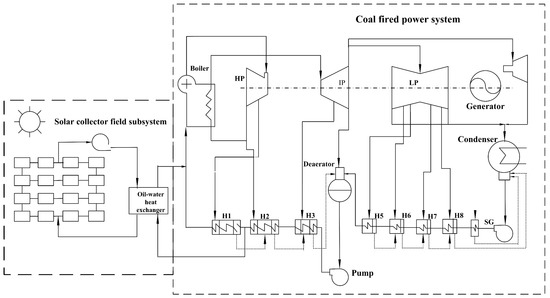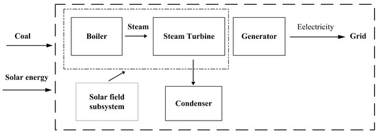 Therefore, the output electricity from the coal-fired system and the solar field subsystem can be, respectively, defined in Equation (8) and Equation (9) on the basis of the
