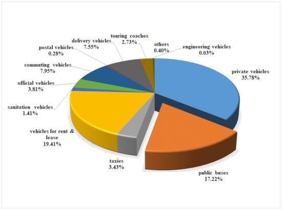 Thanks to the implementation of government policies, 383,285 EVs, of different scope and purpose, have been sold and used across China. Figure 1 shows EV application and distribution data from different transportation networks between 2013 and 2015, published by the Chinese Automotive Technology and Research Centre in 2016 [18]. The time between 2013 and 2015 was a period of demonstration of EVs in cities/city groups. Clearly, great improvement has been traced in both public transportation and private use, as 66,004 EVs were used as public buses between 2013 and 2015, which amounts to 17.22%.