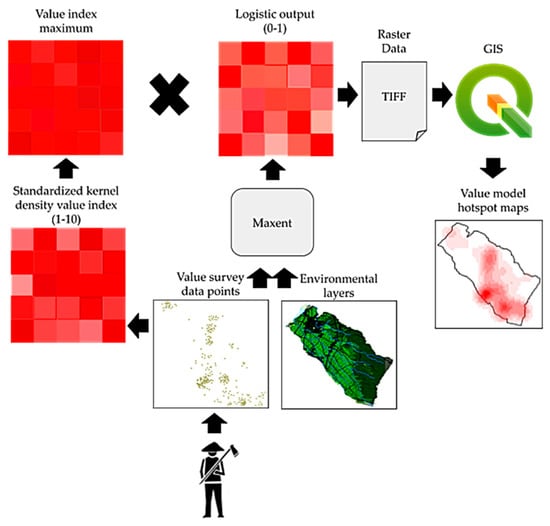 Nonmaterial-intangible value mapping process with Maxent used in this study. Adapted from Sherrouse and Semmens [].