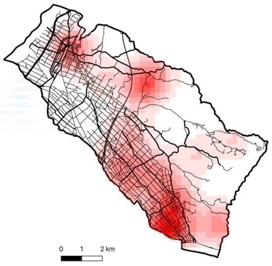 Social Values for Ecosystem Services, SolVES, [] runs best on a Microsoft Windows operating system, and uses Esri ArcGIS 10.0 software; its Spatial Analyst Extension for working with grid-based data; and Maxent maximum entropy modeling software, version 3.3.3k. For this reason, this study used R [] to execute a mapping method similar to the SolVES 3.0 ‘value mapping model’ tool [] to obtain results. Survey data points were transformed into spatial point vectors. Kernel Density Estimation (KDE) of surfaces was performed for each of the seven NICE values based on the available spatial data points that respondents named for each value. Kernel density surfaces were not weighted by the respondents’ percent allocations since some did not provide complete allocations. In the SolvES value mapping model tool [], using non-weighted kernel density surfaces is a valid option. After performing KDE, the maximum values across the seven values were identified for each cell and recorded in a single maximum grid which was standardized to range from one to ten. Maxent then generates logistic value layers (ranging from 0 to 1) using all identified locations across all seven NICE values. The Maxent logistic output is then multiplied with the maximum grid to estimate the overall social value. Maxent value map outputs were then used as inputs for compiling maps with QGIS Geographic Information System version 3.8.1-Zanzibar [] (Figure 2).