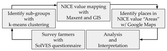 Figure 6 is an overview of the study process. By indexing NICE values that were spatially intersected with land cover raster data, we show the relative concentration of values by subgroups on the physical landscape at a socio-ecological production landscape scale.